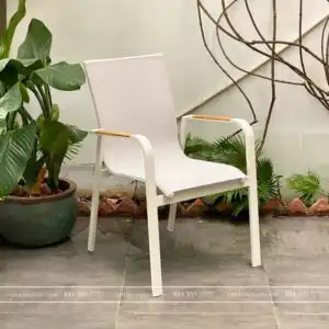 Kiểu dáng quen thuộc từ những chiếc ghế cao, khung ghế là đường nét mềm mại và chắc chắn, mang lại dáng vóc cứng cáp và gọn gàng cho ghế. Với tone màu trắng sang trọng giúp chiếc ghế dễ dàng phối với nhiều mẫu bàn khác nhau. Mặt lưng và mặt ngồi của ghế được làm từ lưới textilene dẻo dai, bền bỉ khi sử dụng.
