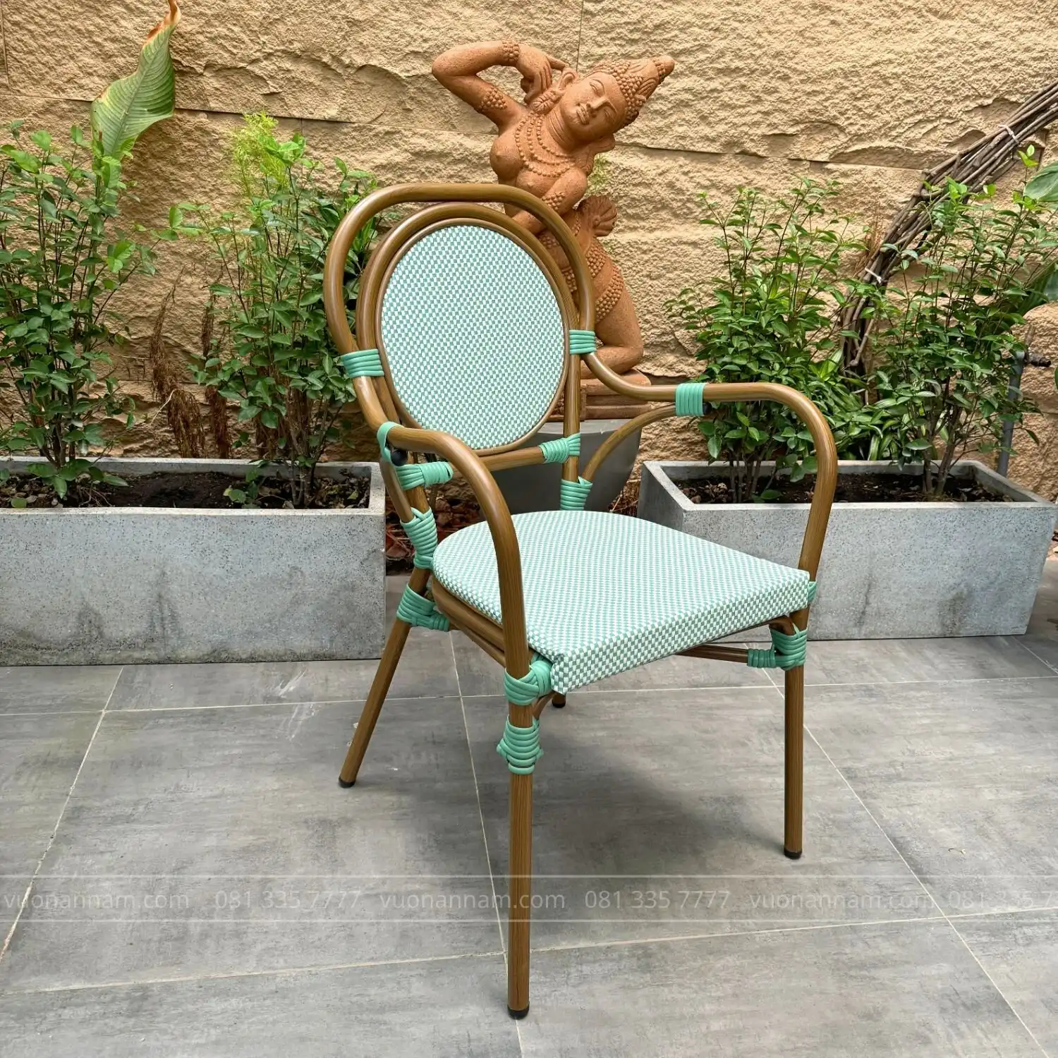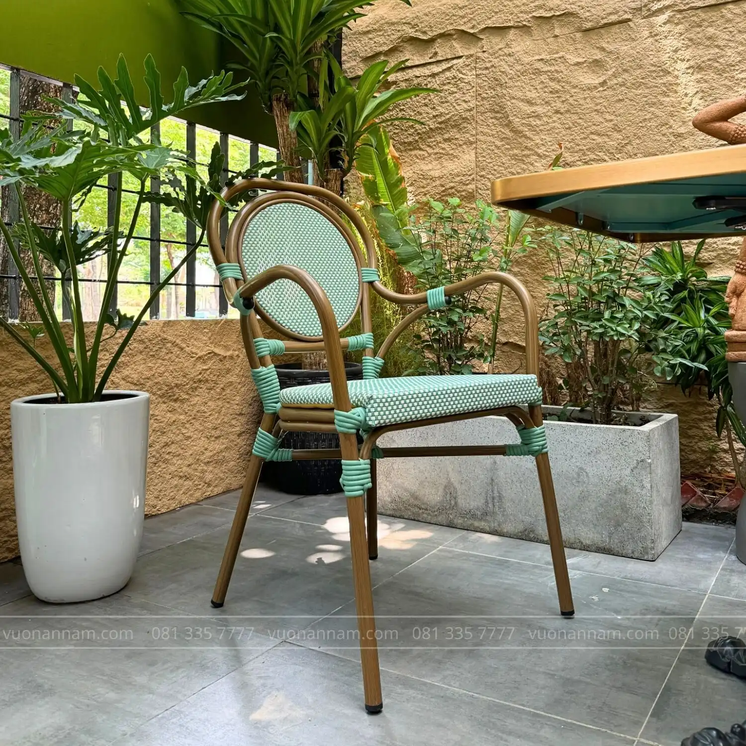 - Thiết kế: Ghế có thiết kế hiện đại, đơn giản nhưng không kém phần tinh tế. Sản phẩm tạo được chiều sâu phù hợp với mọi không gian ngoài trời, từ quán cafe sang trọng đến sân vườn nhỏ xinh. Sự kết hợp giữa phong cách và chức năng giúp ghế trở thành điểm nhấn ấn tượng cho không gian của bạn.