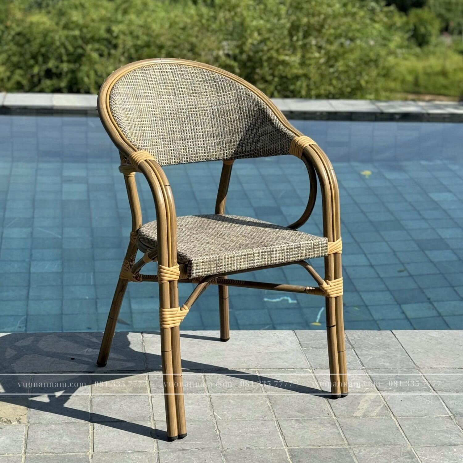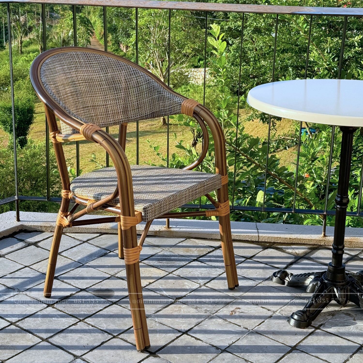 Ghế cafe ngoài trời GTL-GC06 có thiết kế nhỏ gọn nhưng vẫn đảm bảo được chiều sâu, chiều rộng khi ngồi một cách cực kỳ thoải mái. Khung ghế hình chữ U ôm lưng tạo cảm giác dễ chịu và thoải mái cho người ngồi. Tay cầm uốn cong mềm mại, nối với chân ghế tạo sự chắc chắn và chống đỡ tốt cho ghế.