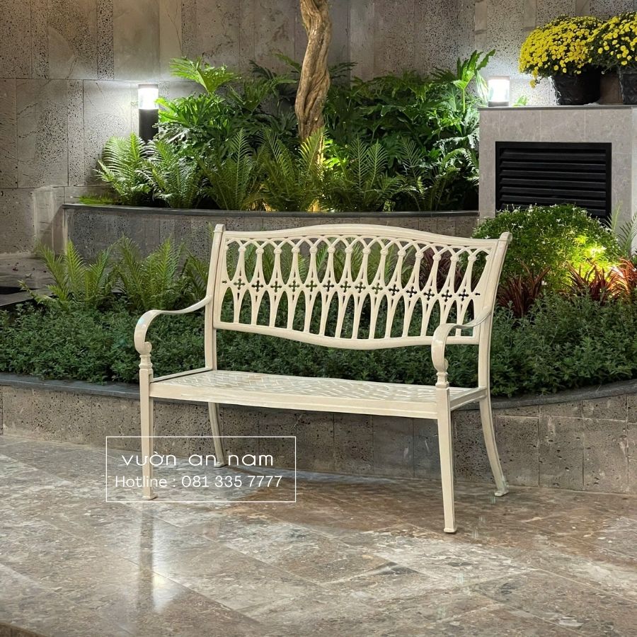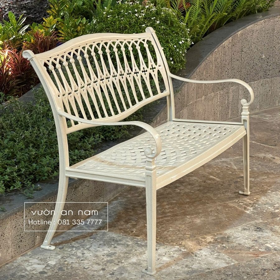 Mẫu ghế được làm bằng nhôm đúc liền nguyên khối chắc chắn không bị lộ vết hàn. Với kích thước 1m1 có thể ngồi thoải mái từ 2 3 người. Đây là sản phẩm được nhiều nước phương Tây ưa chuộng.