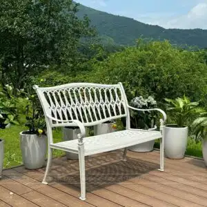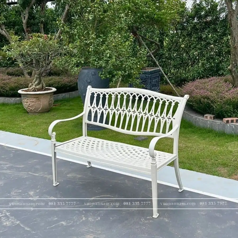 Mẫu ghế được làm bằng nhôm đúc liền nguyên khối chắc chắn không bị lộ vết hàn. Với kích thước 1m1 có thể ngồi thoải mái từ 2 3 người. Đây là sản phẩm được nhiều nước phương Tây ưa chuộng.