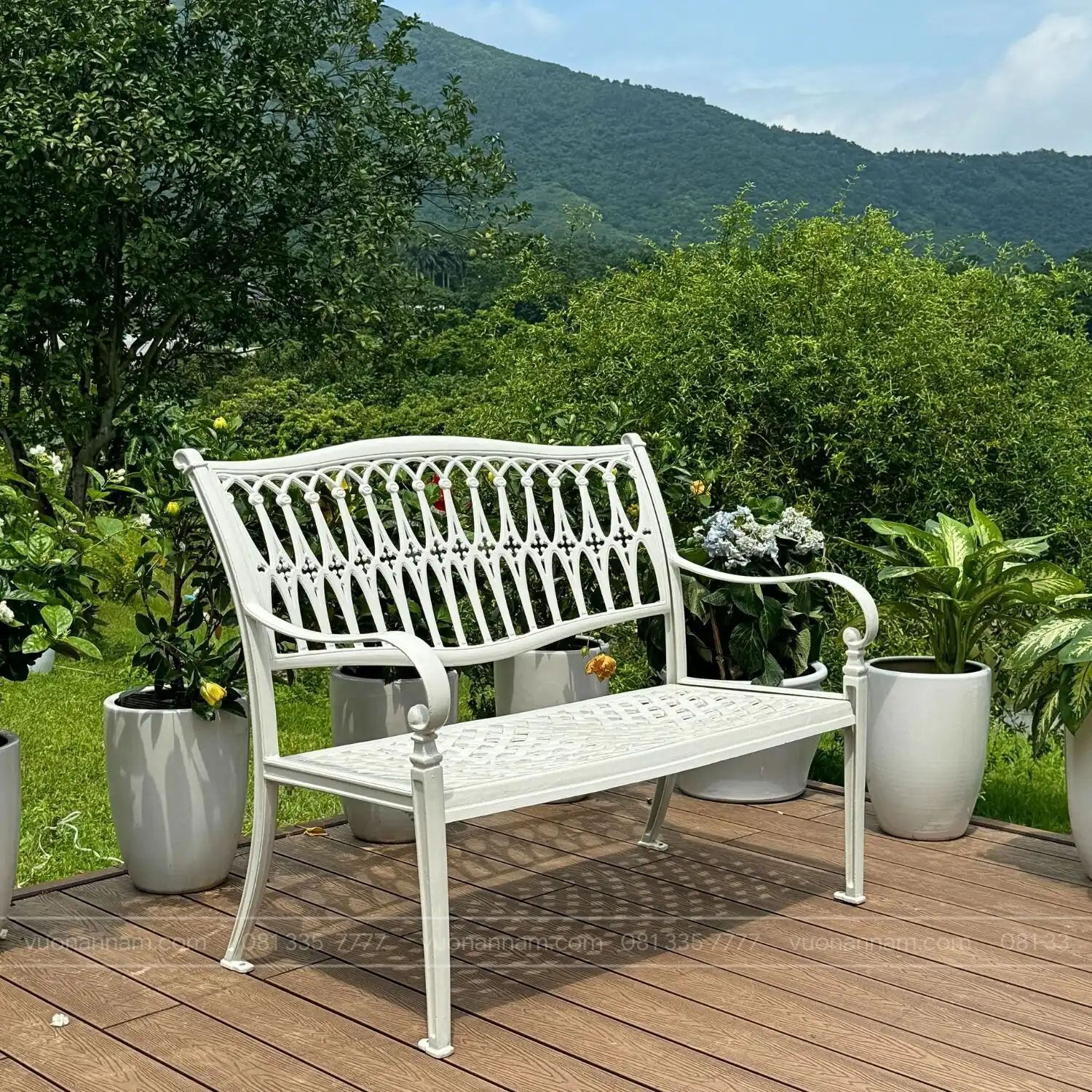 Ghế công viên GCV-05T sở hữu nét đẹp cổ điển sang trọng, đây là điểm nhấn ấn tượng cho không gian. Sản phẩm được sử dụng nhiều tại các khuôn viên biệt thự, công viên, resort,… Với những họa tiết hoa văn sang trọng, kết hợp với tone màu trắng và nâu ánh đồng cổ điển vô cùng ấn tượng.