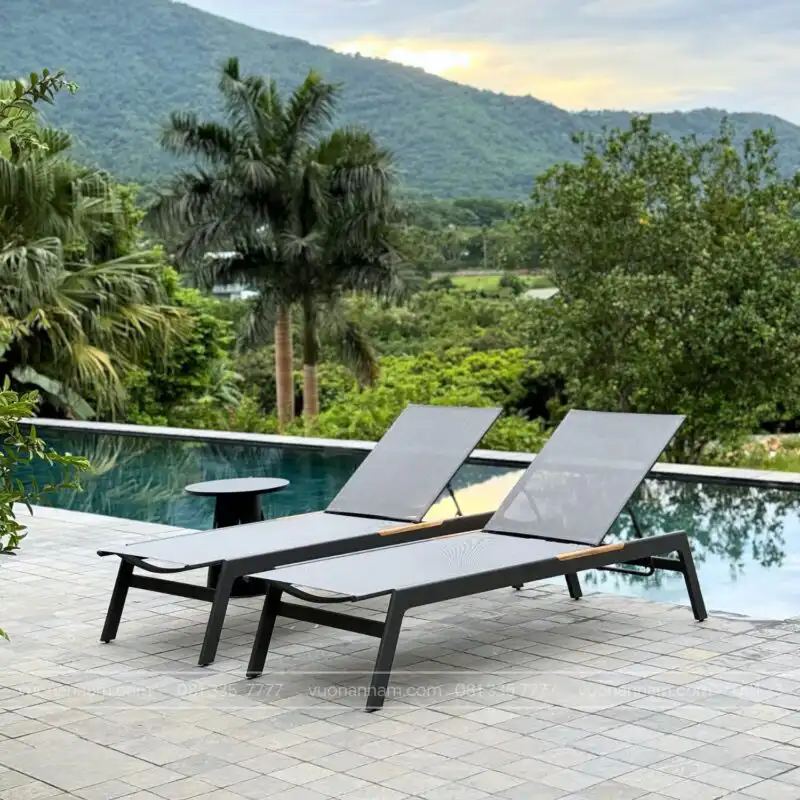 • Chất liệu: Khung nhôm sơn tĩnh điện, mặt nằm và lưng tựa lưới Textilene kháng nước