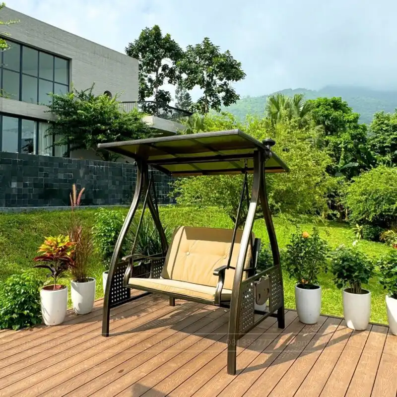 Còn gì phù hợp hơn một chiếc xích đu nhôm đúc XD-3A. Sang trọng có sang trọng, tinh tế có tinh tế, hút mắt bất kì vị khách nào ghé thăm.