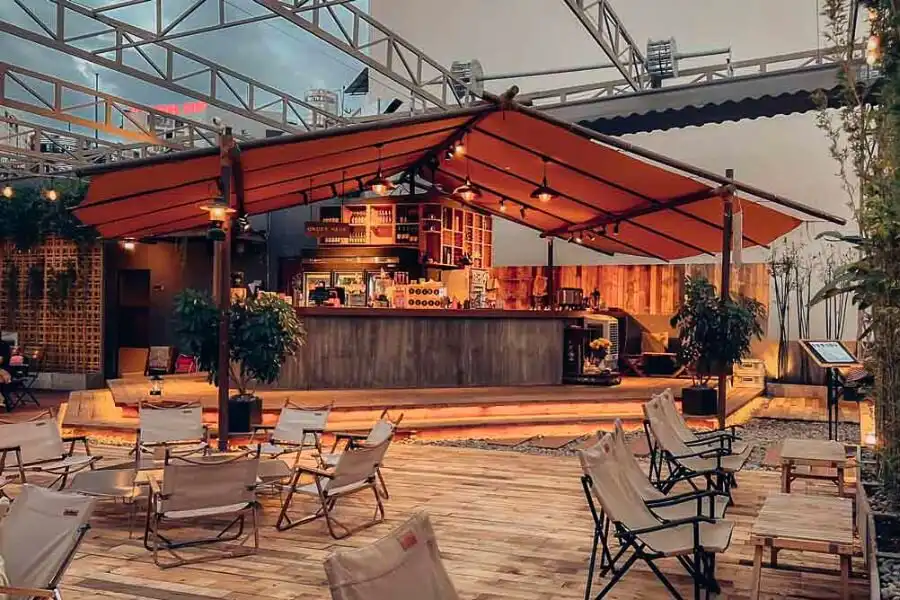Mẫu thiết kế quán cafe sân vườn dạng cắm trại thường sử dụng các vật liệu tự nhiên và tạo cảm giác gần gũi với thiên nhiên. Thiết kế này thường bao gồm các yếu tố như lều trại, nến đốt, bàn ghế gỗ, lò sưởi, ánh sáng lung linh và hoa lá. Quán cafe sân vườn dạng cắm trại có không gian mở, giúp khách hàng tận hưởng không khí trong lành và yên tĩnh của thiên nhiên.