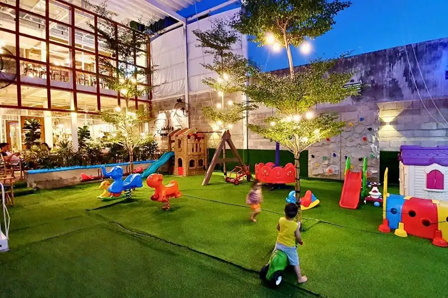 5. Mẫu thiết kế quán cafe sân vườn có khu vui chơi cho trẻ em
