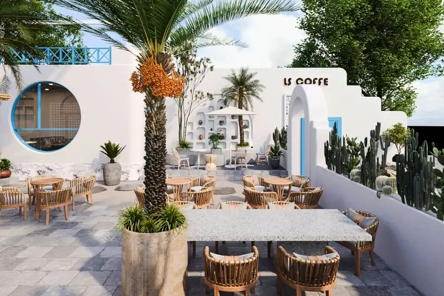 Mẫu thiết kế quán cafe sân vườn phong cách địa Trung Hải mang đến một không gian ấm cúng, sang trọng và độc đáo. Sử dụng các màu sắc, kiến trúc, đèn trang trí, vật liệu và trang trí đặc trưng của phong cách địa Trung Hải, quán cafe sân vườn phong cách địa Trung Hải tạo nên một không gian độc đáo và thu hút khách hàng.