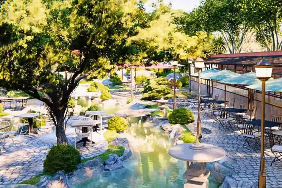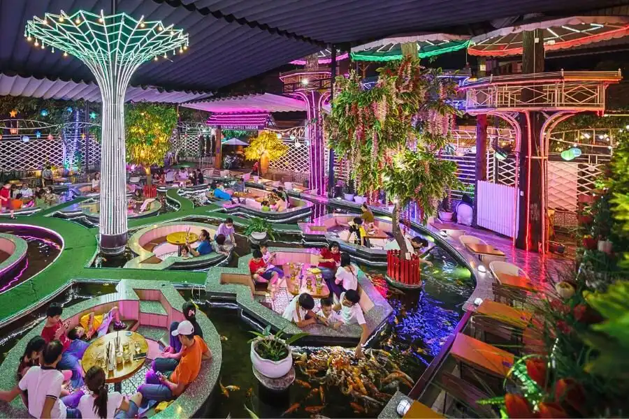 Thiết kế quán cafe sân vườn hồ cá Koi mang đến cảm giác thư giãn và gần gũi với thiên nhiên, đồng thời cũng tạo nên không gian đẹp mắt và độc đáo để khách hàng có thể thưởng thức cà phê và thư giãn.
