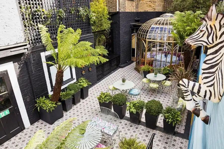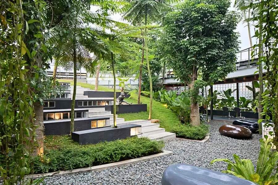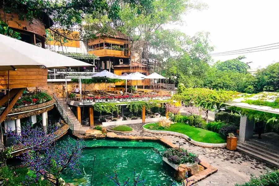 Với tính chất khí hậu Việt Nam là nhiệt đới nóng ẩm quanh năm, các khu vườn phong cách tropical là lựa chọn thích hợp để thiết kế quán cafe sân vườn. Bạn có thể áp dụng xu hướng này để tạo ra không gian quán xanh mát suốt cả năm mà vẫn độc đáo và thu hút khách hàng.