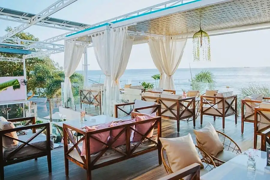 Mẫu thiết kế quán cafe sân vườn gần biển thường sử dụng các màu sắc tươi tắn như màu xanh, màu trắng và màu nâu để tạo cảm giác gần gũi với biển. Thiết kế này thường bao gồm các bàn ghế thoải mái và đầy màu sắc, kết hợp với cây xanh và hoa lá để tạo ra không gian vui tươi và sôi động. Đèn lồng và các phụ kiện biển cũng được sử dụng để tăng thêm không khí nghỉ ngơi giữa bầu trời xanh và đại dương. Mẫu thiết kế quán cafe sân vườn gần biển tạo cảm giác thoải mái và rất phù hợp để thư giãn, tận hưởng không khí biển.
