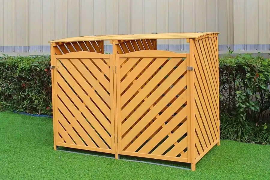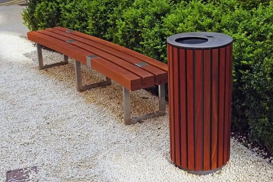 Thùng rác ngoài trời bằng gỗ là một sản phẩm được thiết kế để sử dụng chủ yếu ngoài trời. Để đáp ứng nhu cầu và chịu được tác động của điều kiện thời tiết, mẫu thùng rác bằng gỗ thường được làm từ khung thép phun sơn tĩnh điện chắc chắn và được ốp bằng nan gỗ từ các loại cây gỗ tự nhiên cao cấp đã được xử lý và tẩm hóa chất chống mối mọt.