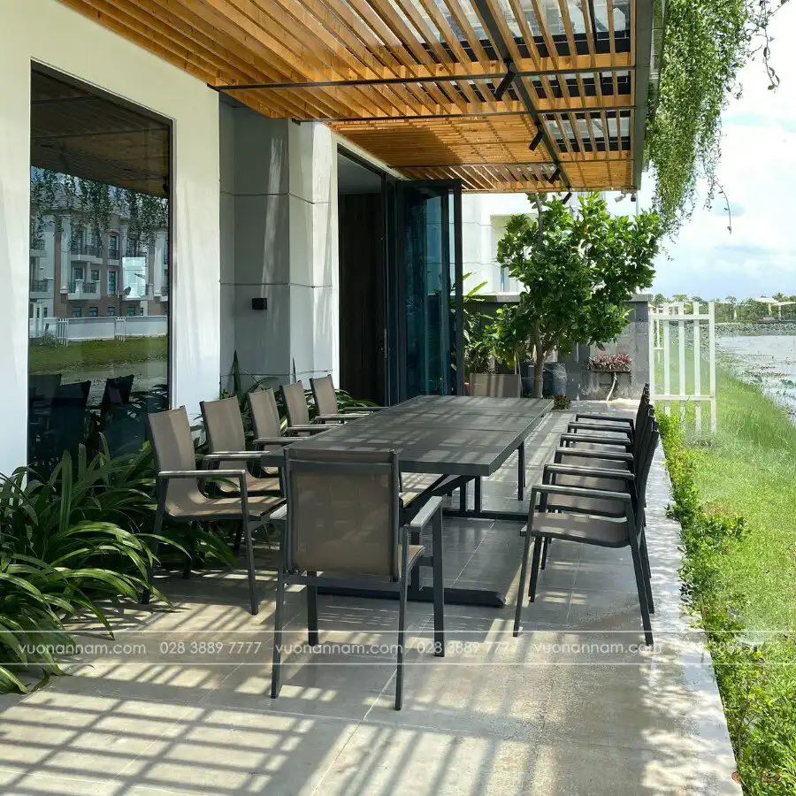 - Thiết kế & Thẩm mỹ: Bộ bàn ghế không chỉ phục vụ nhu cầu sử dụng mà còn ảnh hưởng đến tổng thể thẩm mỹ của không gian ngoài trời.