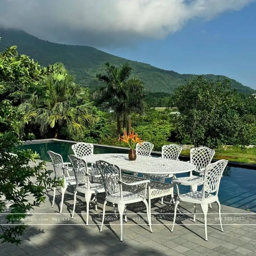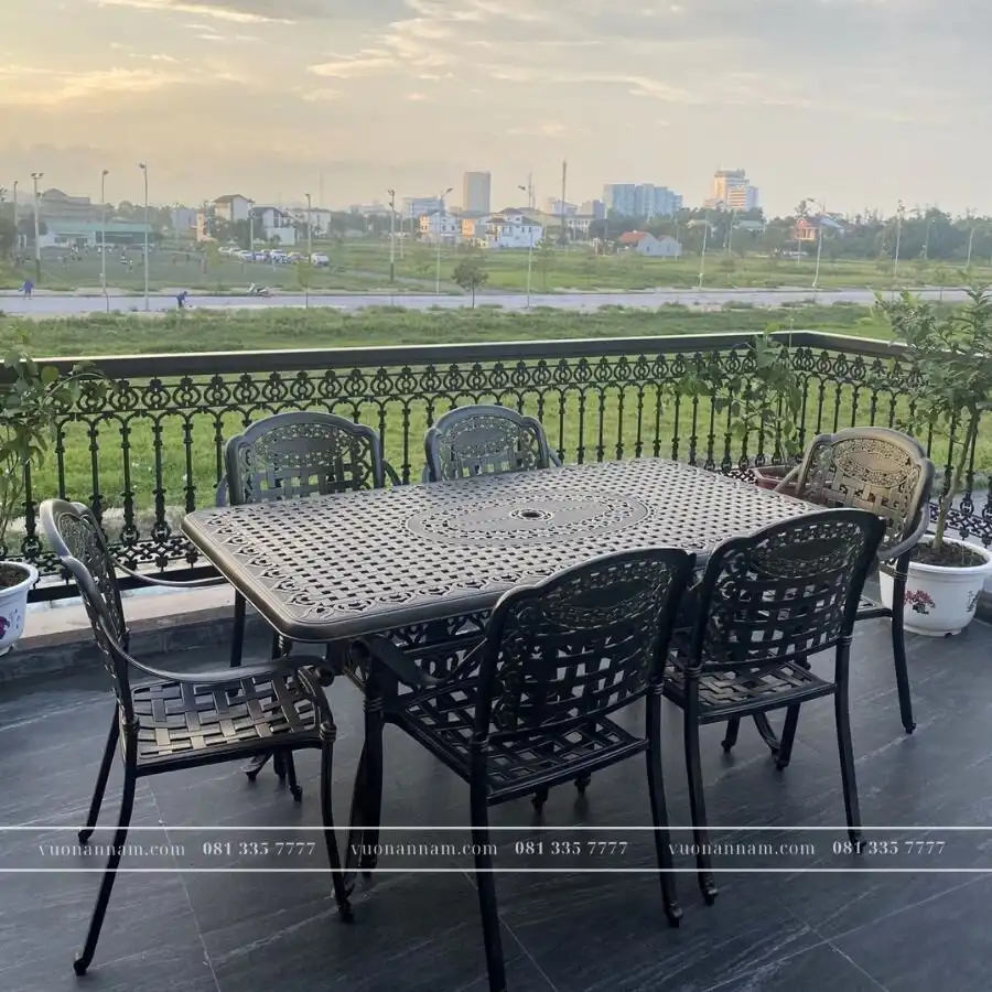 Bàn ghế nhôm đúc đang trở thành xu hướng bởi tính thẩm mỹ cao và độ bền vượt trội. Sản phẩm từ nhôm đúc thường có họa tiết hoa văn tinh tế, tạo điểm nhấn cổ điển cho không gian. Đặc biệt, lớp sơn tĩnh điện phủ bên ngoài giúp sản phẩm chống ăn mòn, gỉ sét, thích hợp cho điều kiện ngoài trời khắc nghiệt.