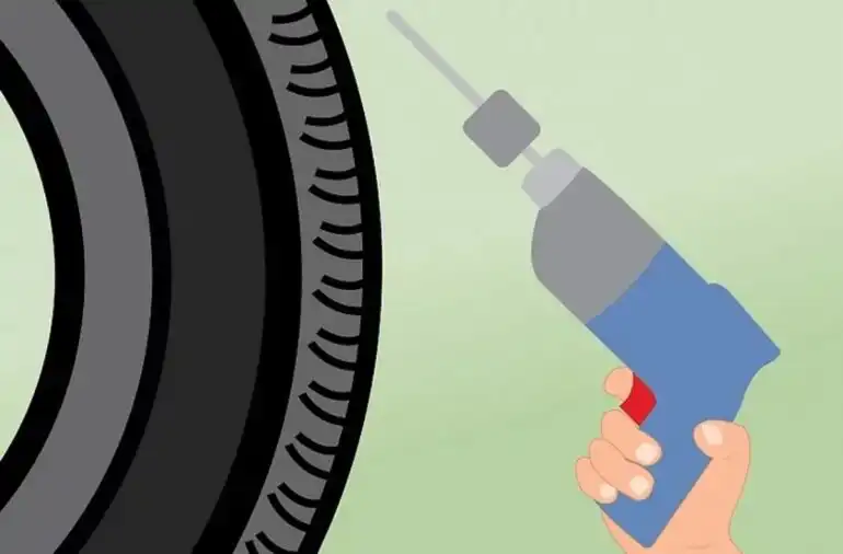 Hãy cẩn thận khi khoan qua lốp xe của bạn. Có thể có các sợi kim loại ở bên trong lốp mà bạn có thể dùng mũi khoan đâm vào để tránh dính vào các lớp khác của bánh xe.