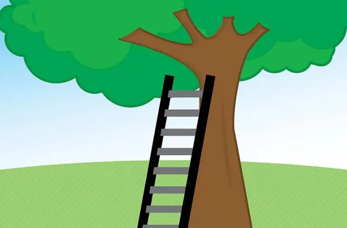 Bước 6: Dùng thang để quấn dây thừng lên cành cây