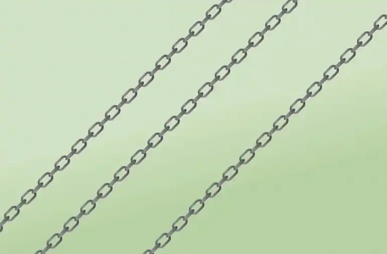 - Chuỗi không cần phải là một thước đo lớn. Khi bạn mua nó, hãy kiểm tra xếp hạng trọng lượng cho chuỗi bạn định mua. Đảm bảo xếp hạng có đủ trọng lượng để nó có thể chứa được một phần ba trọng lượng của một vài đứa trẻ. Nó chỉ cần giữ một phần ba trọng lượng vì bạn sẽ có ba dây xích để tiêu tan trọng lượng.