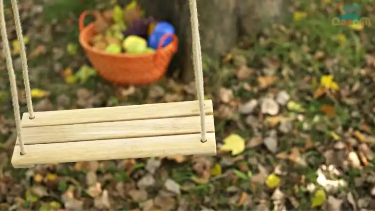 Tấm ván gỗ dùng trong xích đu dây thừng có thể là tấm gỗ pallet.